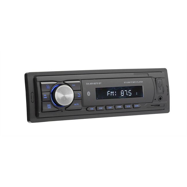 Il DX AR-8070 BT è un modello di autoradio completamente digitale, senza lettore CD. Ha un sintonizzatore FM e può riprodurre file MP3 / WMA attraverso la porta USB o il lettore di schede SD. È inoltre possibile collegare un lettore MP3 direttamente all'ingresso ausiliario (AUX) posto sul pannello anteriore. La radio ha un modulo telefonico Bluetooth con microfono integrato sulla parte frontale con il quale è possibile collegare il telefono cellulare per effettuare e ricevere chiamate . La radio DX AR-8070 BT ha una potenza di 4 x 20 watt, e posteriormente è presente l'uscita per collegare un eventuale amplificatore per migliorare il sistema audio complessivo.