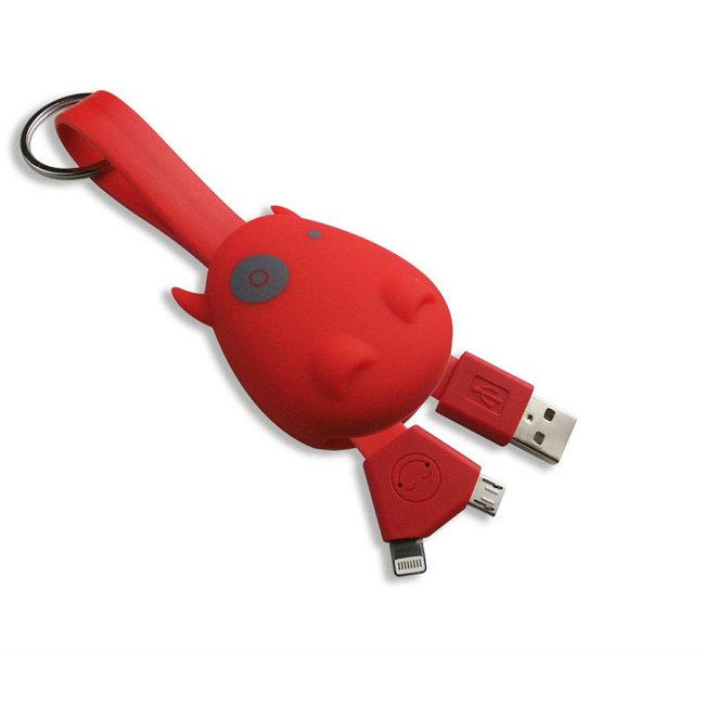 Questo divertente portachiave ti permette di avere sempre con te un cavo di ricarica. Dotato di un cavo USB e uno Micro-USB. Disponibile in vari colori.
